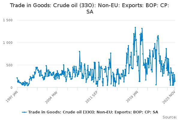 Download this time seriesTrade in Goods: Crude oil (33O): Non-EU: Exports: BOP: CP: SA