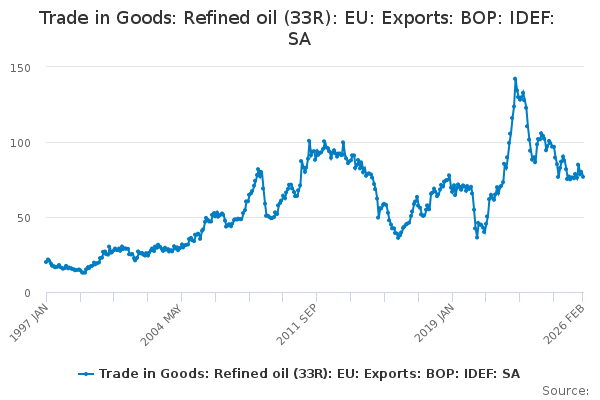 Download this time seriesTrade in Goods: Refined oil (33R): EU: Exports: BOP: IDEF: SA