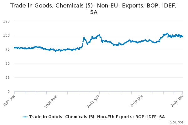 Download this time seriesTrade in Goods: Chemicals (5): Non-EU: Exports: BOP: IDEF: SA