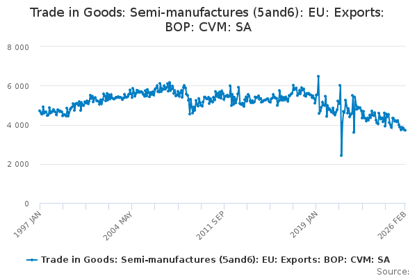 Download this time seriesTrade in Goods: Semi-manufactures (5and6): EU: Exports: BOP: CVM: SA