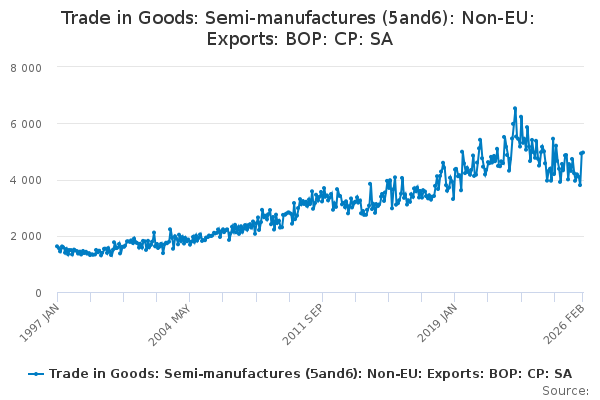 Download this time seriesTrade in Goods: Semi-manufactures (5and6): Non-EU: Exports: BOP: CP: SA