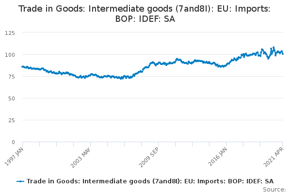 Download this time seriesTrade in Goods: Intermediate goods (7and8I): EU: Imports: BOP: IDEF: SA