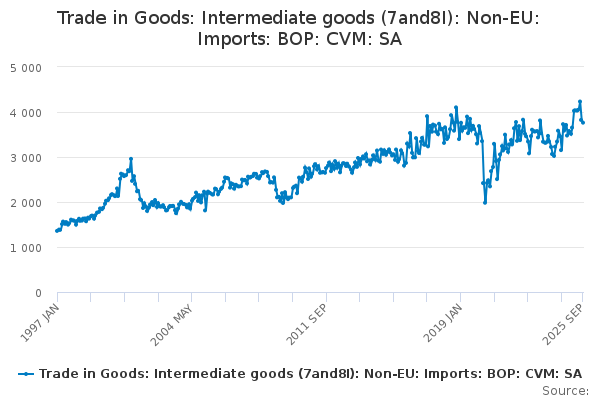 Download this time seriesTrade in Goods: Intermediate goods (7and8I): Non-EU: Imports: BOP: CVM: SA