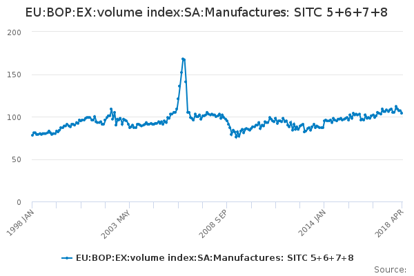 Download this time seriesEU:BOP:EX:volume index:SA:Manufactures: SITC 5+6+7+8