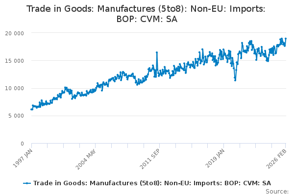 Download this time seriesTrade in Goods: Manufactures (5to8): Non-EU: Imports: BOP: CVM: SA