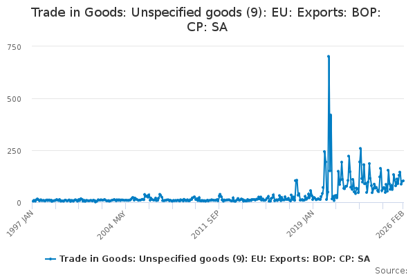 Download this time seriesTrade in Goods: Unspecified goods (9): EU: Exports: BOP: CP: SA