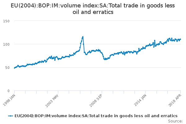Download this time seriesEU(2004):BOP:IM:volume index:SA:Total trade in goods less oil and erratics