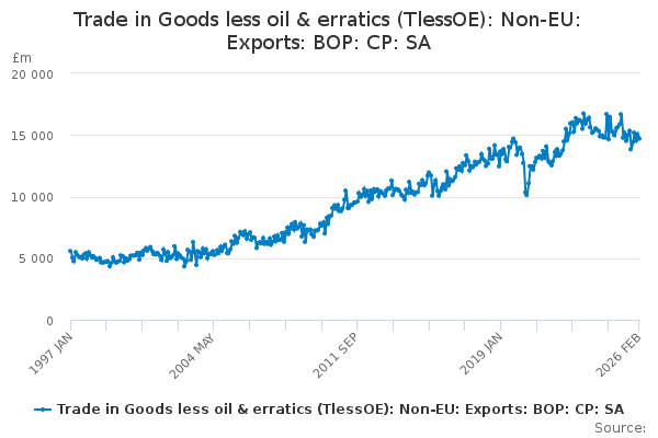 Download this time seriesTrade in Goods less oil & erratics (TlessOE): Non-EU: Exports: BOP: CP: SA