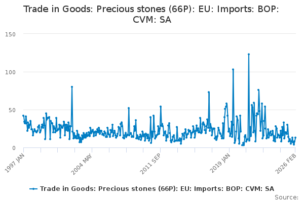 Download this time seriesTrade in Goods: Precious stones (66P): EU: Imports: BOP: CVM: SA