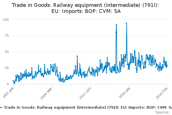 Download this time seriesTrade in Goods: Railway equipment (intermediate) (791I): EU: Imports: BOP: CVM: SA