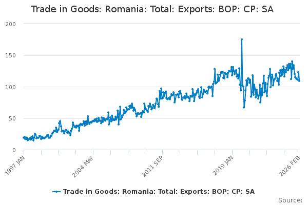 Download this time seriesTrade in Goods: Romania: Total: Exports: BOP: CP: SA