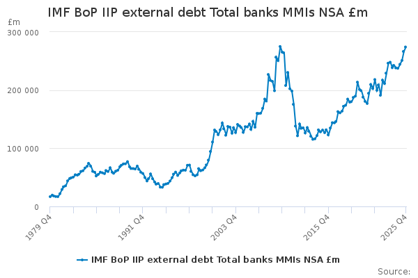 Download this time seriesIMF BoP IIP external debt Total banks MMIs NSA £m