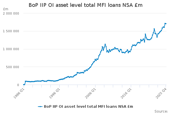 Download this time seriesBoP IIP OI asset level total MFI loans NSA £m