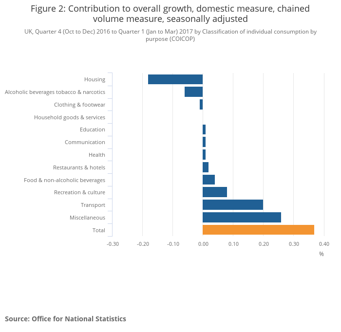 UK, Quarter 4 (Oct to Dec) 2016 to Quarter 1 (Jan to Mar) 2017 by classification of individual consumption by purpose (COICOP)