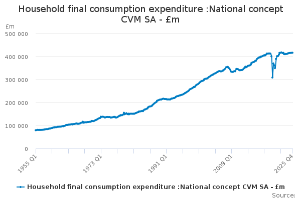 Download this time seriesHousehold final consumption expenditure :National concept CVM SA - £m