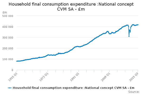 Download this time seriesHousehold final consumption expenditure :National concept CVM SA - £m