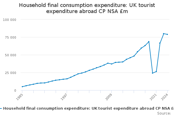 Download this time seriesHousehold final consumption expenditure: UK tourist expenditure abroad CP NSA £m
