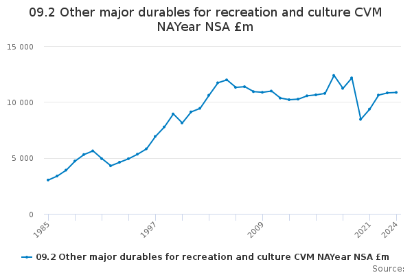 Download this time series09.2 Other major durables for recreation and culture CVM NAYear NSA £m