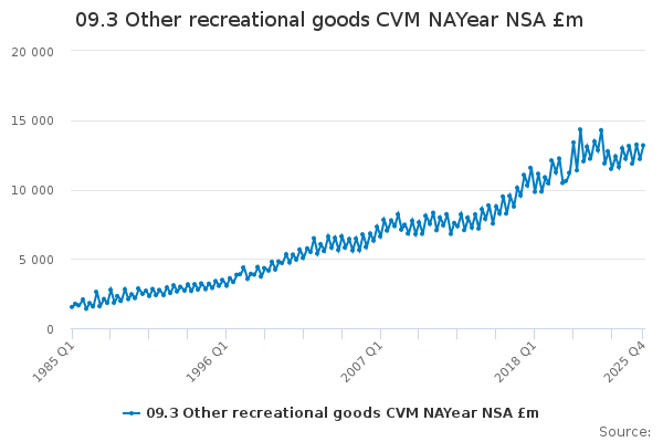 Download this time series09.3 Other recreational goods CVM NAYear NSA £m