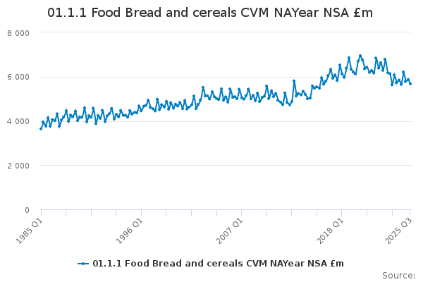 Download this time series01.1.1 Food Bread and cereals CVM NAYear NSA £m
