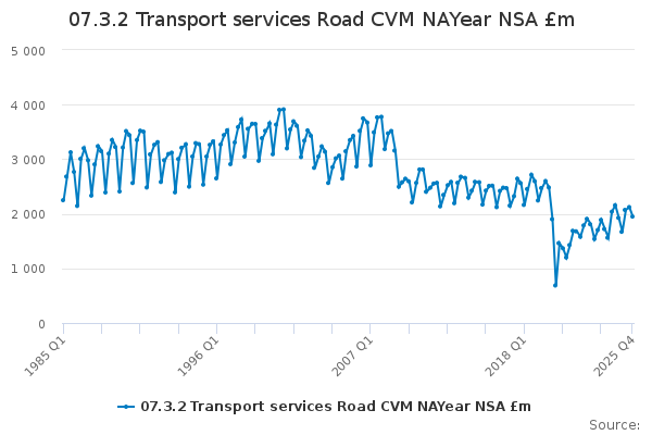 Download this time series07.3.2 Transport services Road CVM NAYear NSA £m