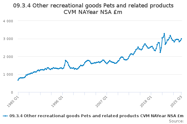 Download this time series09.3.4 Other recreational goods Pets and related products CVM NAYear NSA £m