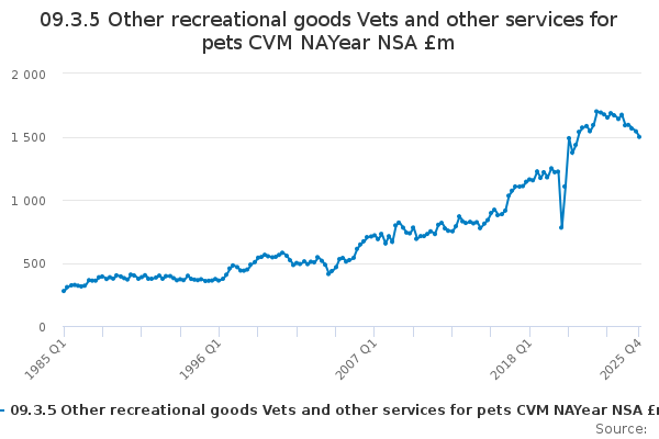 Download this time series09.3.5 Other recreational goods Vets and other services for pets CVM NAYear NSA £m
