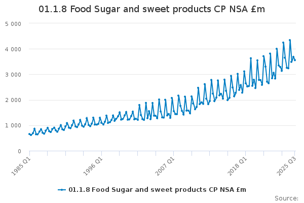 Download this time series01.1.8 Food Sugar and sweet products CP NSA £m