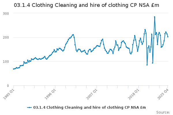 Download this time series03.1.4 Clothing Cleaning and hire of clothing CP NSA £m