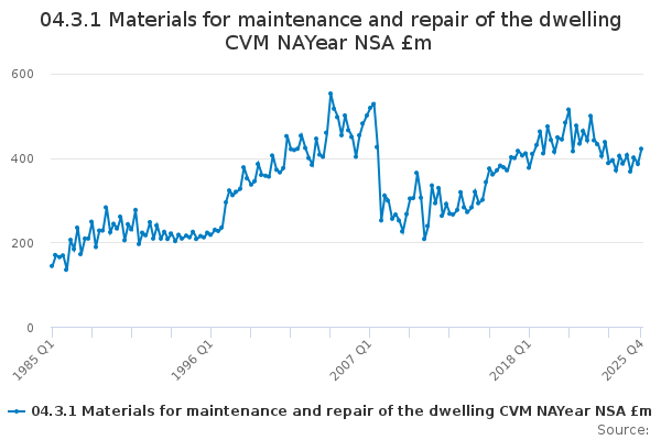 Download this time series04.3.1 Materials for maintenance and repair of the dwelling CVM NAYear NSA £m