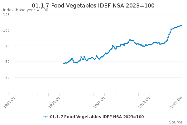 Download this time series01.1.7 Food Vegetables IDEF NSA 2023=100