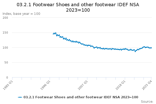 Download this time series03.2.1 Footwear Shoes and other footwear IDEF NSA 2023=100