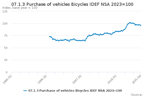 Download this time series07.1.3 Purchase of vehicles Bicycles IDEF NSA 2023=100