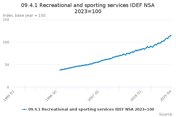 Download this time series09.4.1 Recreational and sporting services IDEF NSA 2023=100