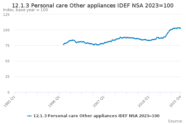Download this time series12.1.3 Personal care Other appliances IDEF NSA 2023=100