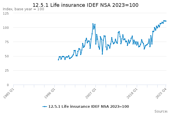 Download this time series12.5.1 Life insurance IDEF NSA 2023=100