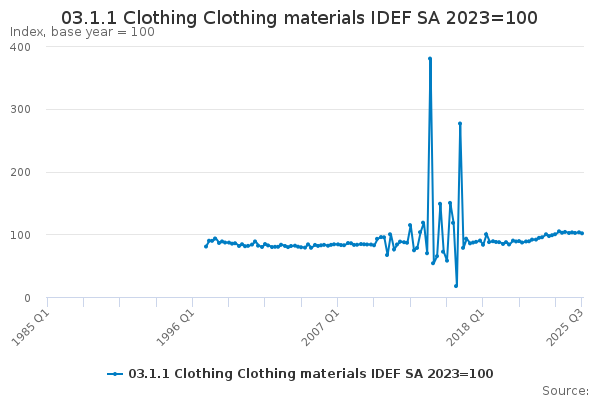 The series with the Classification of Individual Consumption According to Purpose (COICOP) codes and associated aggregate series 03.1.2, 03.2.2, 04.1.2, 04.4.2, 05.1.3, 07.1.1, 07.2.2, 08.2, 09.1.2, 09.1.3, 11.1.1, 12.1.2, have been updated. All other series and data periods from 1998 onwards are unaffected.