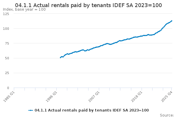 Download this time series04.1.1 Actual rentals paid by tenants IDEF SA 2023=100