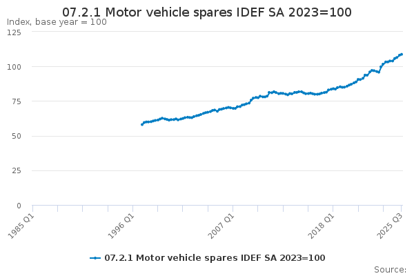 Download this time series07.2.1 Motor vehicle spares IDEF SA 2023=100