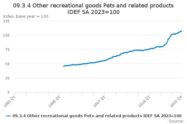Download this time series09.3.4 Other recreational goods Pets and related products IDEF SA 2023=100