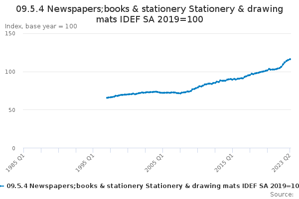 Download this time series09.5.4 Newspapers;books & stationery Stationery & drawing mats IDEF SA 2019=100