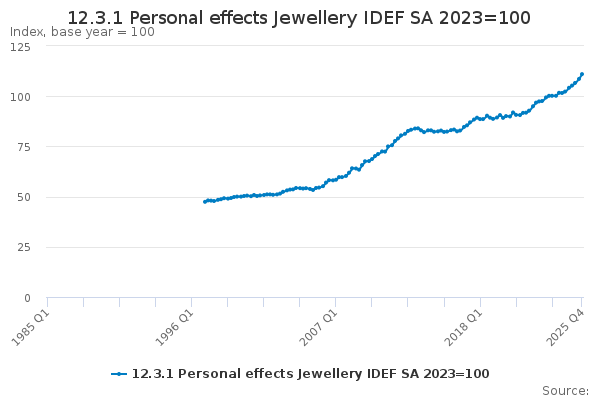 Download this time series12.3.1 Personal effects Jewellery IDEF SA 2023=100