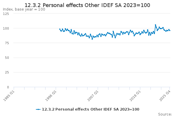 Download this time series12.3.2 Personal effects Other IDEF SA 2023=100