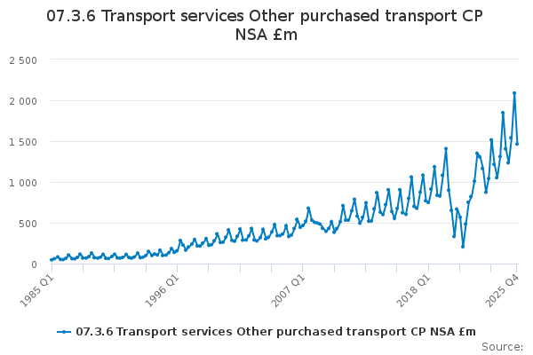 Download this time series07.3.6 Transport services Other purchased transport CP NSA £m