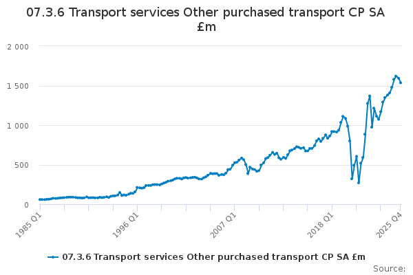 Download this time series07.3.6 Transport services Other purchased transport CP SA £m