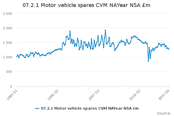 Download this time series07.2.1 Motor vehicle spares CVM NAYear NSA £m