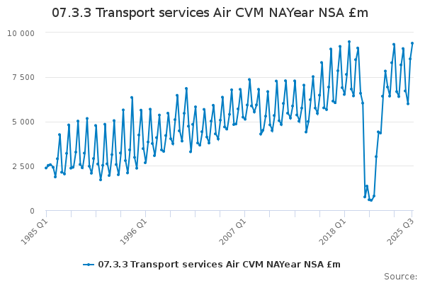 Download this time series07.3.3 Transport services Air CVM NAYear NSA £m