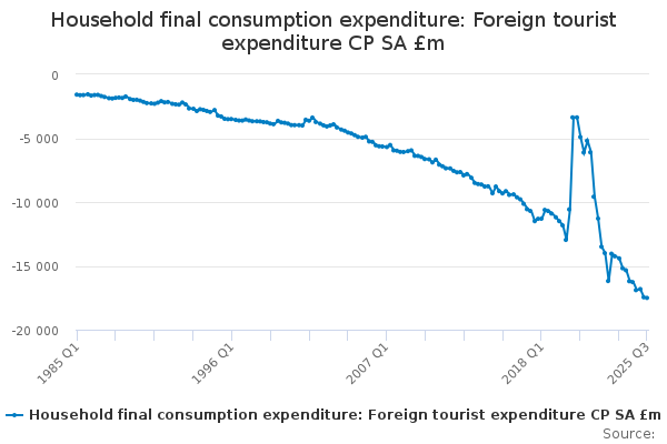 Download this time seriesHousehold final consumption expenditure: Foreign tourist expenditure CP SA £m