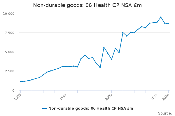 Download this time seriesNon-durable goods: 06 Health CP NSA £m