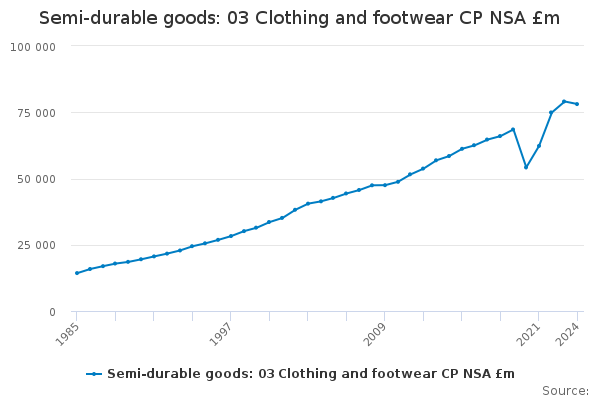 Download this time seriesSemi-durable goods: 03 Clothing and footwear CP NSA £m
